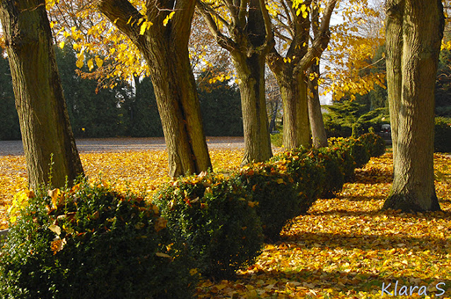 Glorious yellow leaves, Klara! They show off the trunks of these trees:) Also interesting is your visit to the cemetery. Many thanks for showing the change of the Seasons where you live. Enjoy your week, Jesh