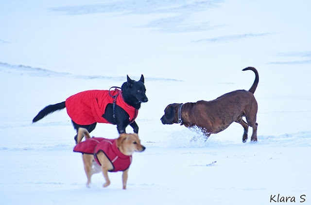 ReplyDeleteNice to have a little extra coat to stay warm! What fun for them to get out and romp!